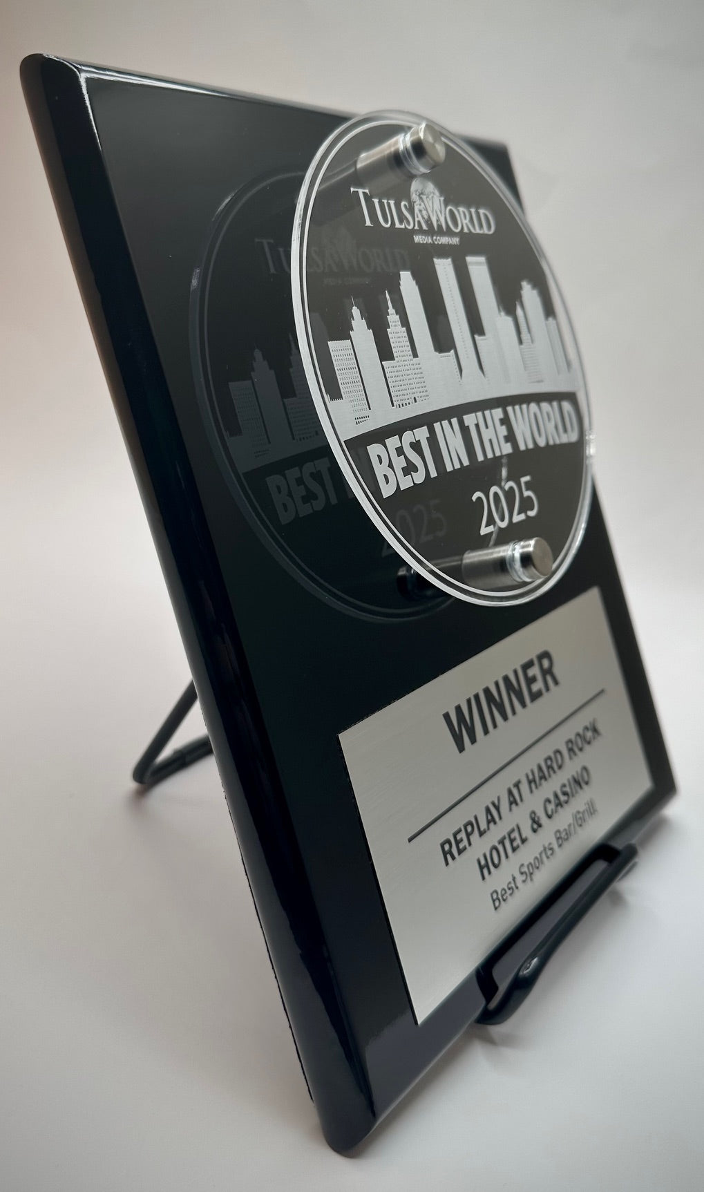Celebrate your achievement in style with the official Best in the World Winner’s Plaque. This elegant keepsake features the exclusive 2025 Best in the World Winners logo, professionally engraved on a high-quality wood base with a glossy finish. Perfect for proudly displaying in your office, lobby, or home, the plaque is a timeless reminder of your excellence and recognition by the Tulsa community.